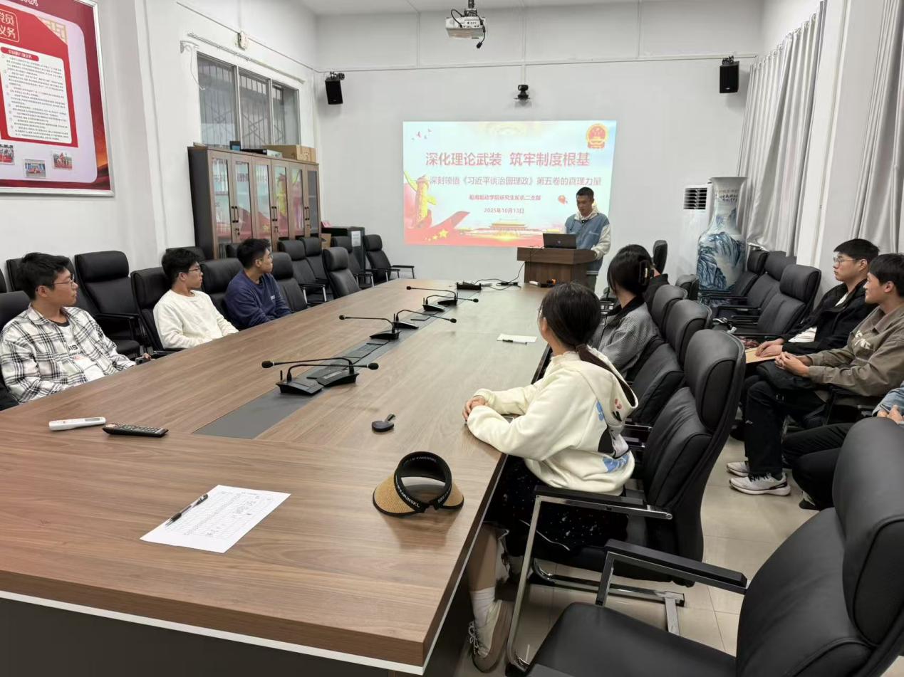 为深入学习贯彻习近平总书记关于教育强国建设的重要论述,深刻领悟习近平新时代中国特色社会主义思想的核心要义,2025年10月13日,博彩平台排名 研究生轮机二支部组织召开专题学习会,聚焦“贯彻落实全国教育大会精神,扛起教育强国建设的使命责任”与“深刻领悟《习近平谈治国理政》第五卷的真理力量”两大主题,开展深入学习和交流研讨。本次活动旨在引导支部党员深化理论武装,筑牢信仰之基,明确时代责任,将学习成果转化为推动科研创新、服务国家战略的自觉行动。会议由党支部副书记李传涛同志主持。