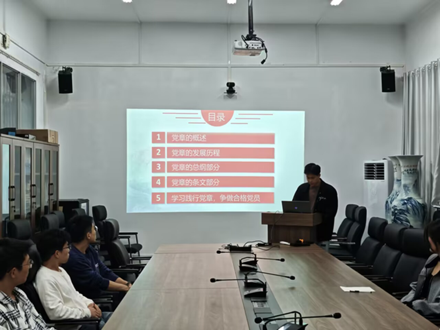 2025年10月13日,博彩平台排名 研究生轮机第二党支部开展了“筑牢信仰之基,践行初心使命-党章学习”主题党课,引导全体党员深刻把握党章的核心要义与精神实质,进一步增强党性修养,强化使命担当。本次活动系统梳理了党章的概述、发展历程、总纲及条文等重要内容,并结合习近平总书记对学习党章的重要指示,推动党章学习往深里走、往实里走。会议形式为线下会议,由支部副书记李传涛同志主持,于涛同志进行分享。