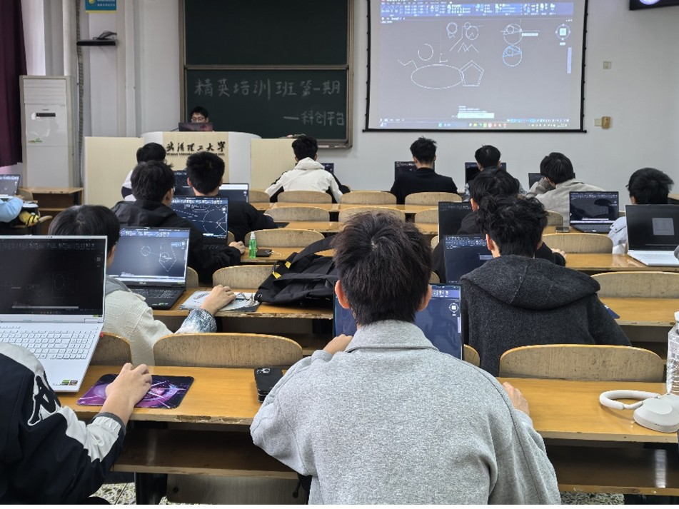 作为“心船”科创训练营的进阶平台,精英培训班以“综合化、前沿化”为培养方向,课程涵盖机械设计、电控技术等跨学科内容,并为下学期电控专项培训奠定基础。首期课程聚焦CAD软件中草图模块的实战应用,张澜通过“理论讲解+随堂实操”模式,结合典型案例拆解设计逻辑,并针对学员操作中的难点逐一答疑。参训学员现场完成齿轮、支架等复杂草图绘制,实践环节完成度达100%。