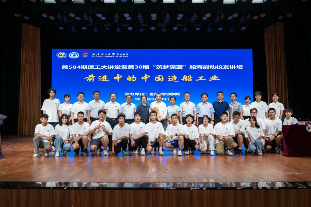 莫鉴辉牵头成立了校友教育志愿者讲师团,利用自己的影响,邀请院士、总师级校友以“月月讲堂”的形式反哺母校,将前沿领域动态“零时差”注入学校教育教学一线,让思政之“魂”与专业之“根”深度融合。2022年底至今,已有加拿大工程院院士刘鹏飞,国产首艘大型邮轮总设计师、中国船舶集团上海外高桥造船有限公司总经理陈刚,原中国船舶工业集团有限公司总经理、中国船舶工业行业协会常务副会长吴强等20余名行业领军人、企业掌舵人参与,搭建了校友和学校的感情桥梁,构筑起产学研用“立体育人网络”。当被问及初衷,莫鉴辉表示:“希望学生们不只是在理论课堂或某一节课上片面认识行业,而是从一个宏观的层面上触摸行业脉搏,真切地了解外面世界的精彩!”