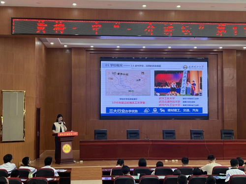 赵水贵对武汉理工大学一行表示热烈欢迎,并简要介绍了黄梅县第一中学的办学历史及近年来的高考录取情况。他讲到,武汉理工大学是省内知名大学,近五年黄梅一中为武汉理工大学输送了一百五十余名优秀学子,在距高考还有四十余天时来到学校,是对学生的加油鼓劲,黄梅一中也将积极为武汉理工大学输送更多优质生源。