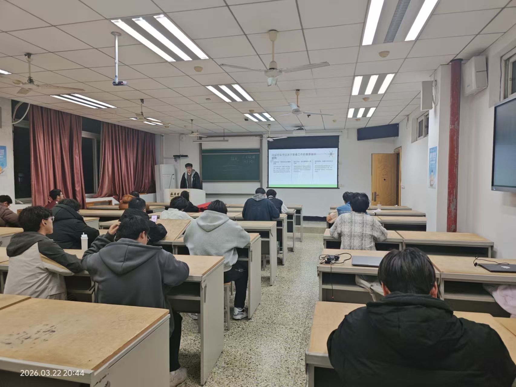 大会伊始,田原通过PPT系统讲解了团员推优工作的政策依据、推选条件、工作流程和纪律要求,明确本次推优严格按照公平、公正、公开原则开展,重点考察团员的思想觉悟、学习态度、日常表现及服务奉献精神,确保把真正优秀的团员推荐给党组织。PPT中对推优资格、投票规则、计票方式等逐一说明,让全体团员清晰知晓大会流程与评议标准。随后,本次推优候选人夏泉、苏子瀚两位同志依次进行自我陈述,分别从思想成长、学习科研、班级服务、社会实践等方面汇报个人表现,表达了向党组织靠拢的坚定意愿与责任担当。陈述结束后,全体团员本着认真负责的态度进行民主投票,经监票、计票环节现场统计并公示结果:夏泉、苏子瀚两位同志均获得支部团员充分认可,高票通过推优评议,成功当选本次支部推优对象。田原对两位同志表示祝贺,并在总结中指出,希望夏泉、苏子瀚以此为新起点,持续加强理论学习,发挥模范带头作用,以更高标准严格要求自己;同时号召支部全体团员以先进为榜样,坚定理想信念,锤炼品德修为,在学习与实践中不断提升自身综合素质,积极向党组织靠拢。