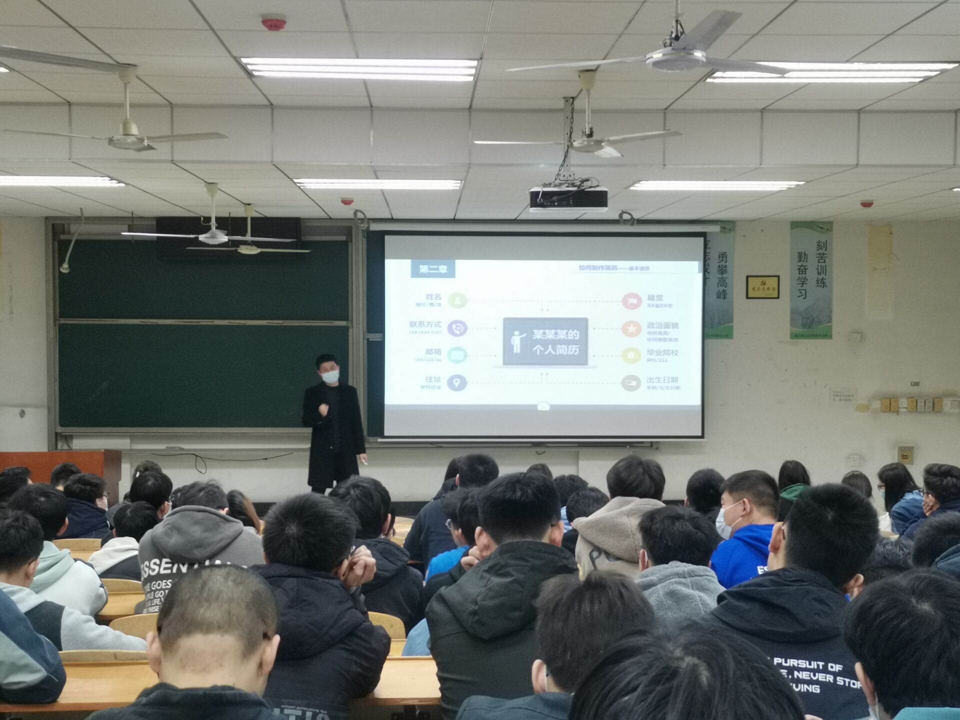 宋老师主要从“如何理解简历”“如何制作简历”“如何投递简历”等三个方面为大家介绍了简历的重要性,制作简历的方法及投递简历的注意事项等。