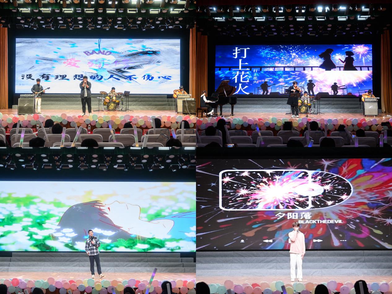由爱弥修乐队演唱的歌曲《没有理想的人不伤心》直击内心最真实的轰鸣与渴望;张子杰等同学合作的器乐表演《打上花火》韵味悠长;徐欣睿同学带来的说唱《夕阳落》,用动人嗓音传递动感旋律背后夕阳西下的深沉情愫;由刘思源同学带来的歌曲《一荤一素》则是转向生活里最温暖的日常,展现了母亲藏在烟火气里的温柔牵挂。