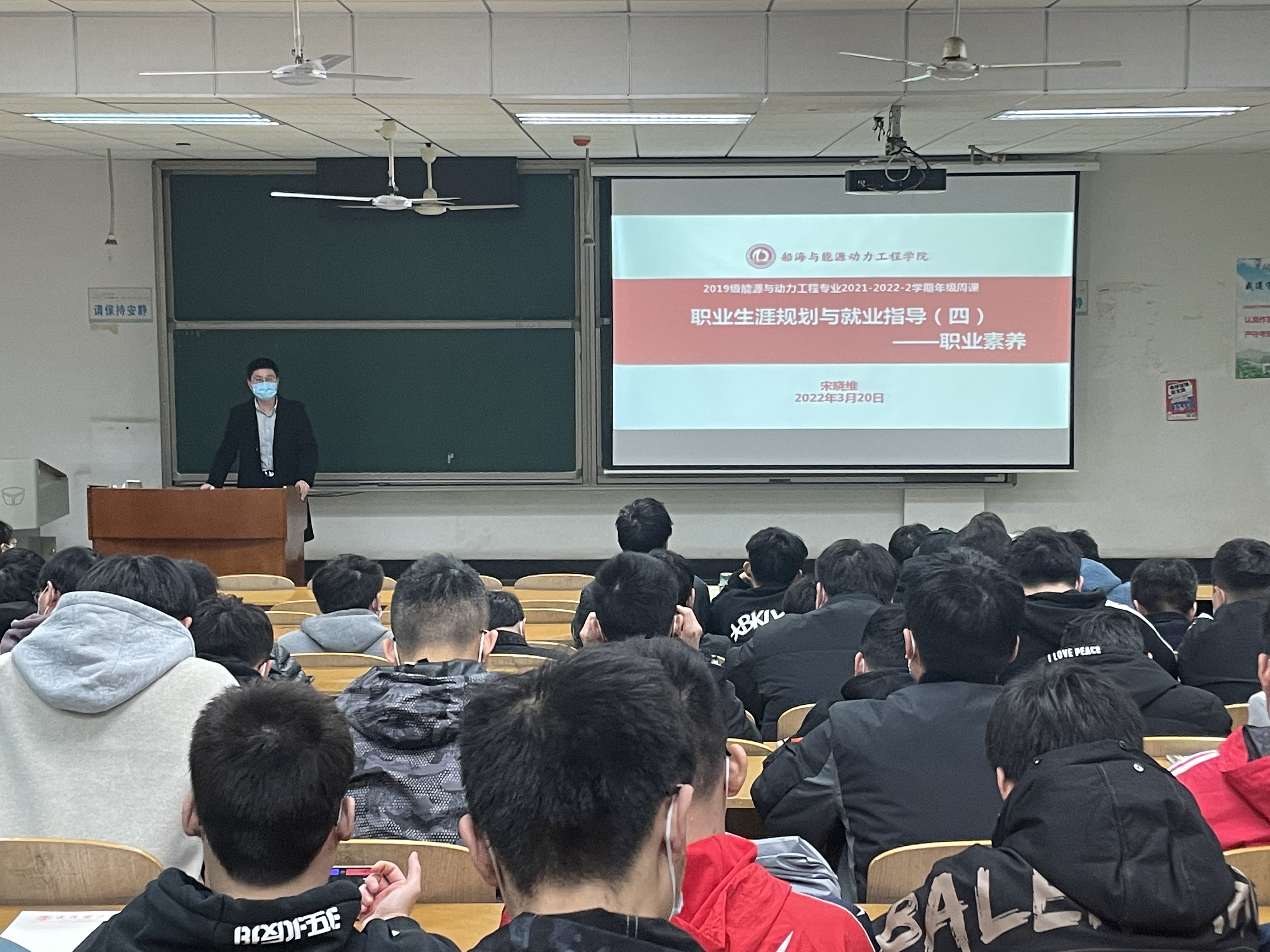 2019级能源与动力工程专业利用年级周课主阵地,在航海楼401教室开展职业生涯规划与就业指导(第四讲)——职业素养。本次培训由辅导员宋晓维老师主讲,2019级能源与动力工程专业全体同学都参与了此次培训。